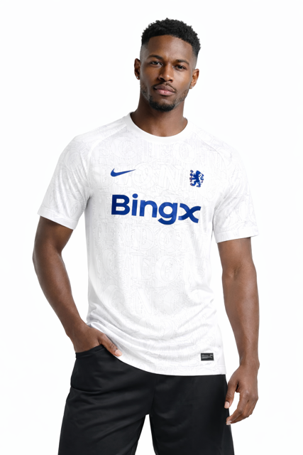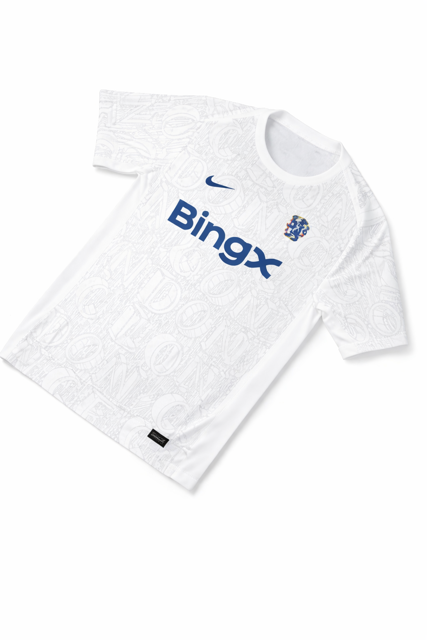 کیت پلیری دوم چلسی فصل 2023/24 با رنگ سفید و الگوی گرافیکی الهامگرفته از واژه