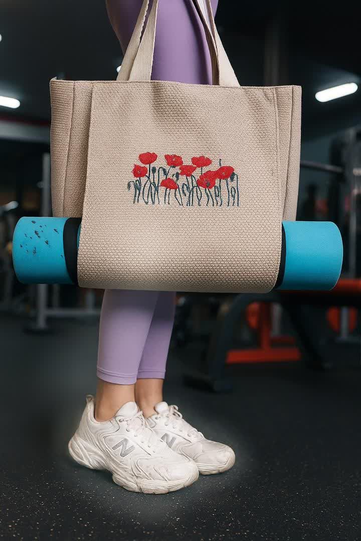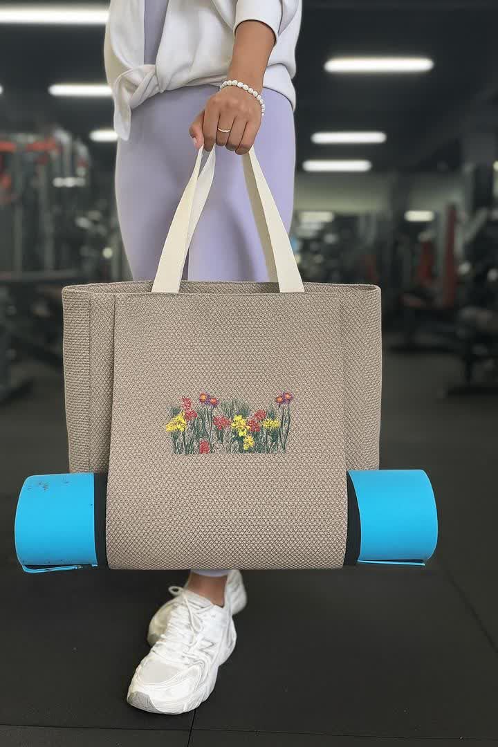 کیف یوگا کتان استردارگلدوزیشده جادار و خوشدوخت پارچه وارداتی ترک