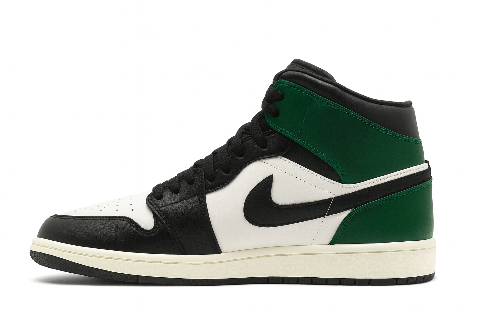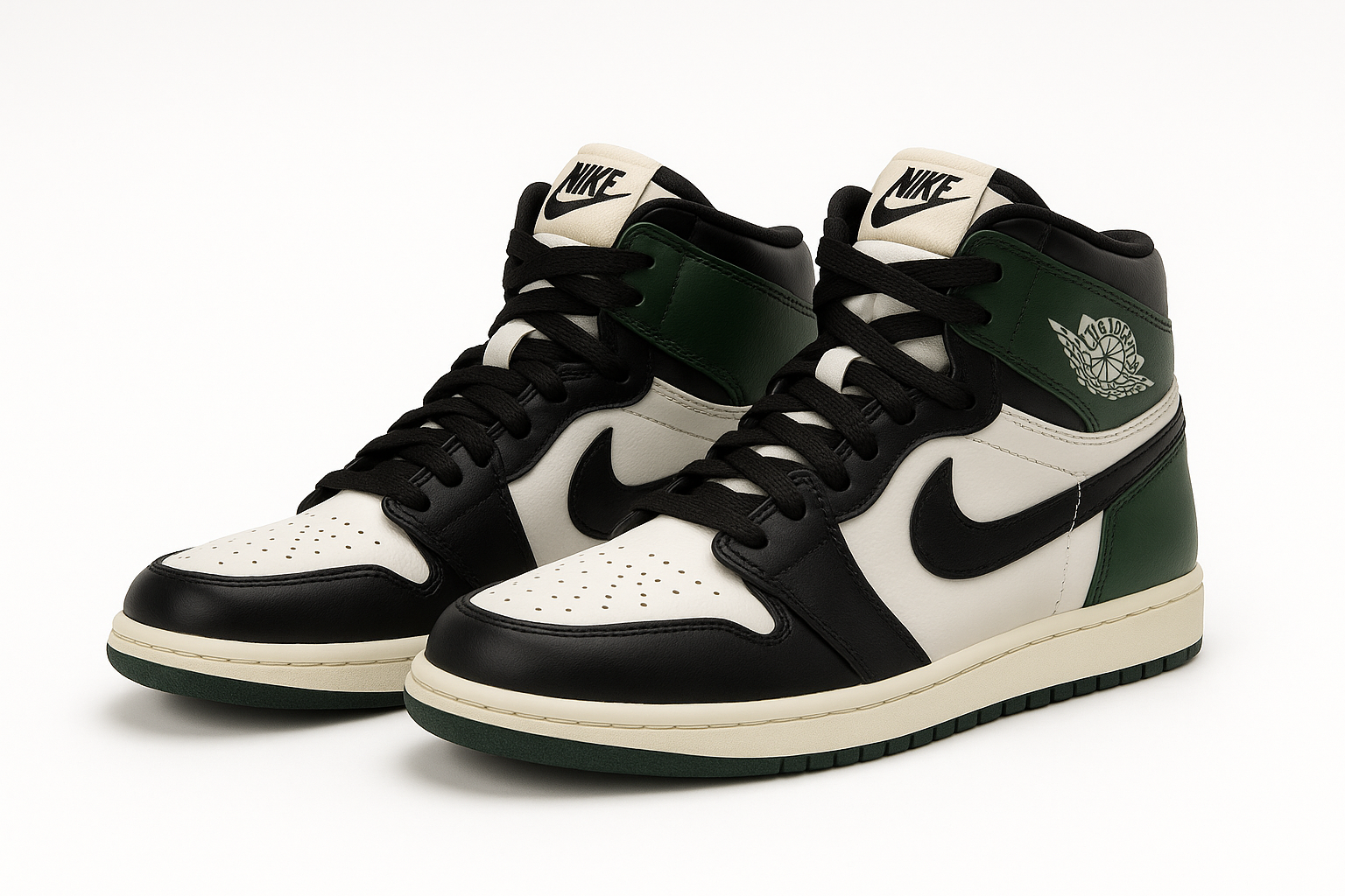 کتونی نایک ایر جردن ۱ – ترکیب کلاسیک سبز، مشکی و سفید با طراحی اسپرت و مدرن