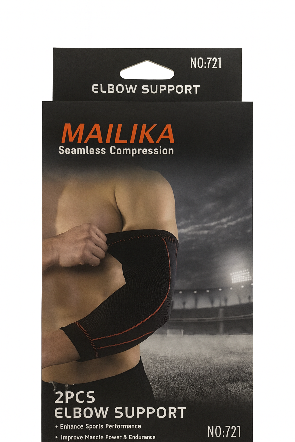 آرنجبند فشاری MAILIKA مدل 721 💪 با طراحی بدون درز، حمایت حرفهای از مفصل آرنج را فراهم میکند.