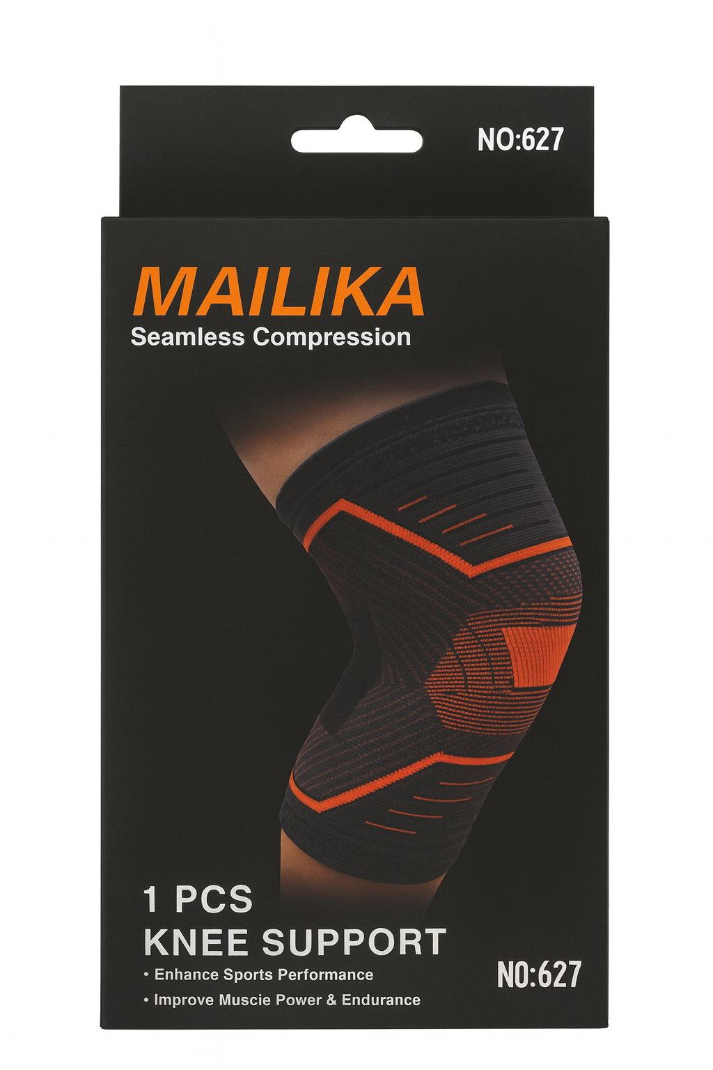 🦵 زانوبند MAILIKA مدل 627 با طراحی بدون درز و پارچه کشی فشاری، پشتیبانی کامل از مفصل زانو را فراهم میکند.