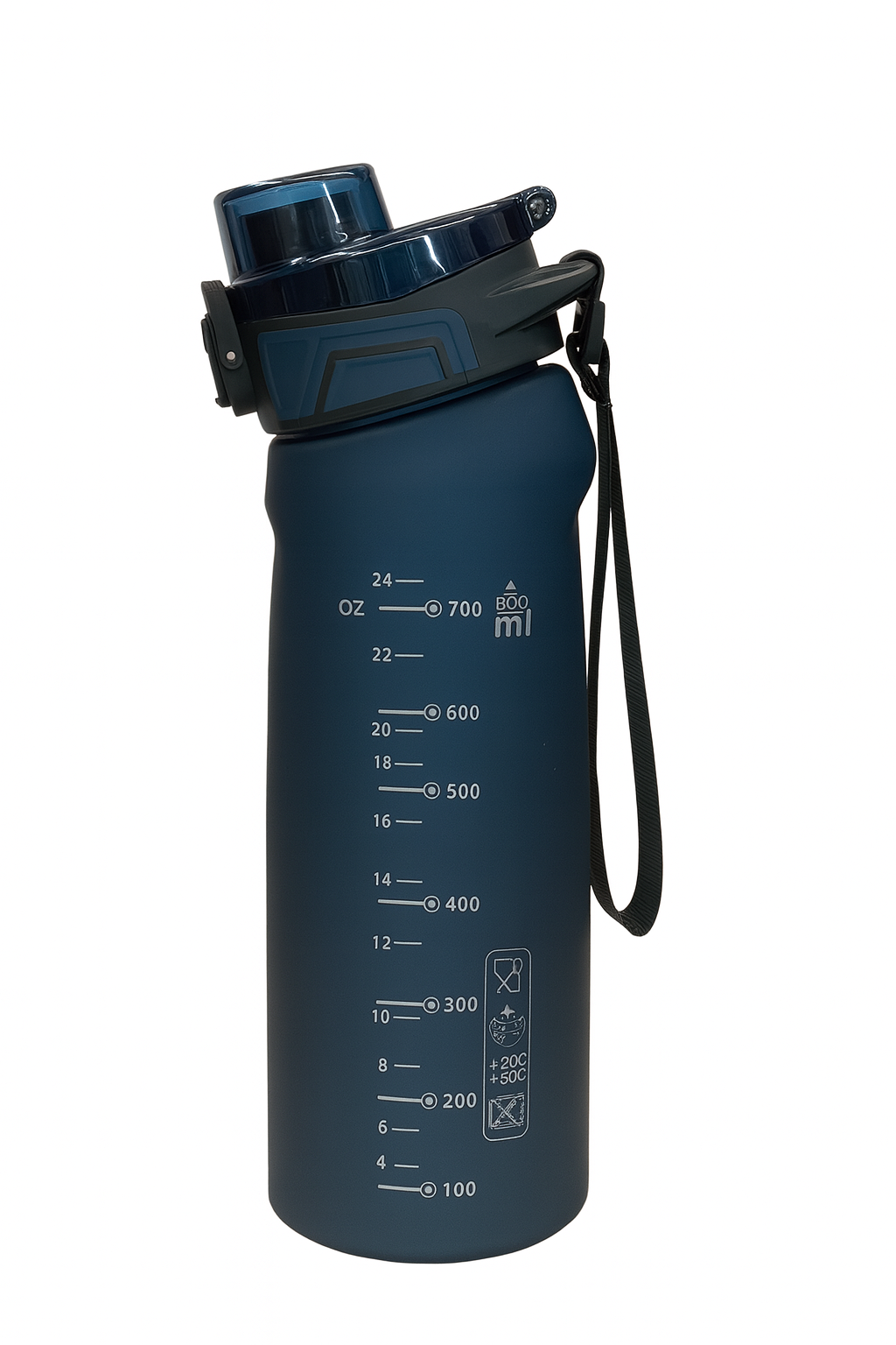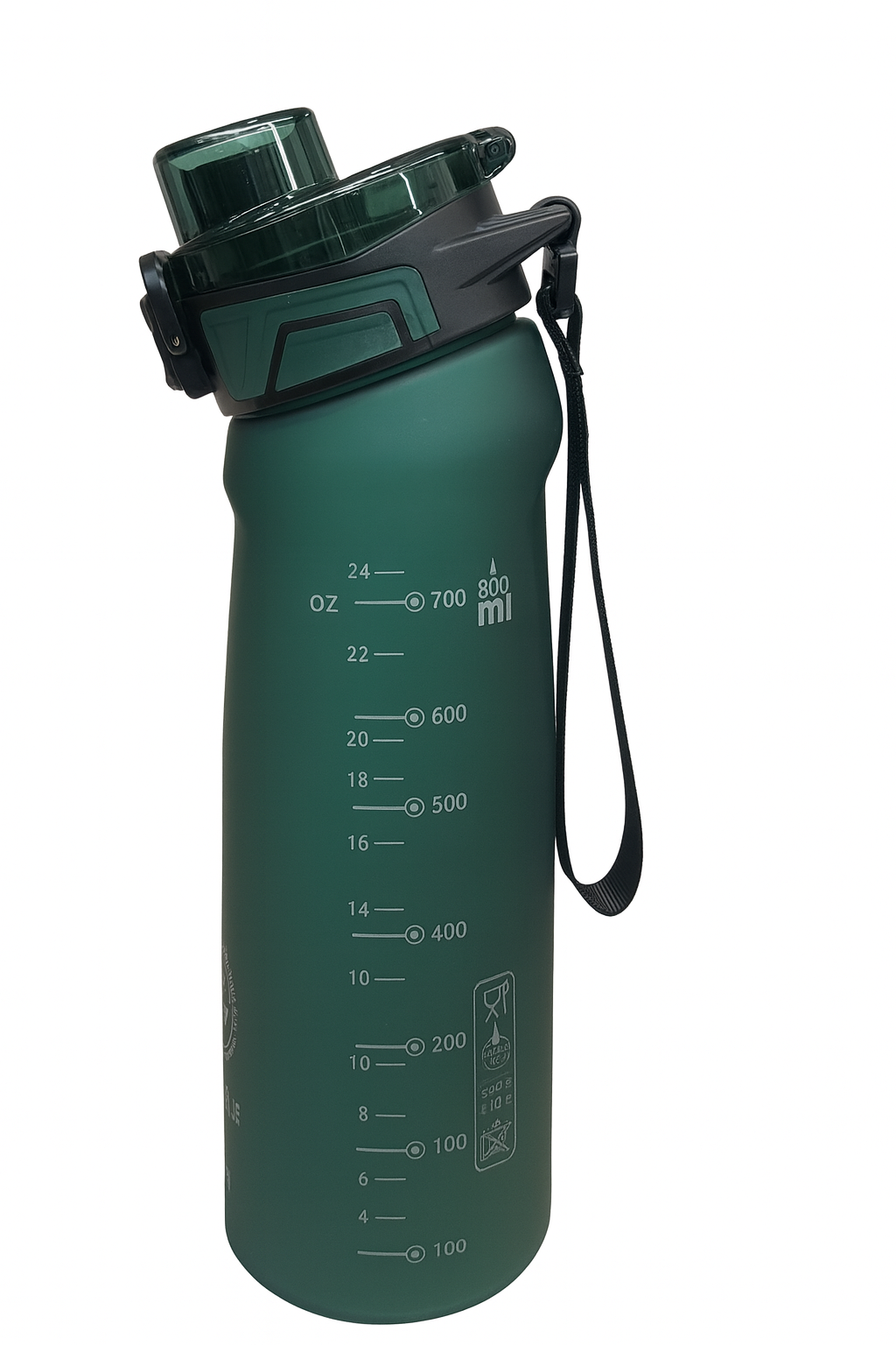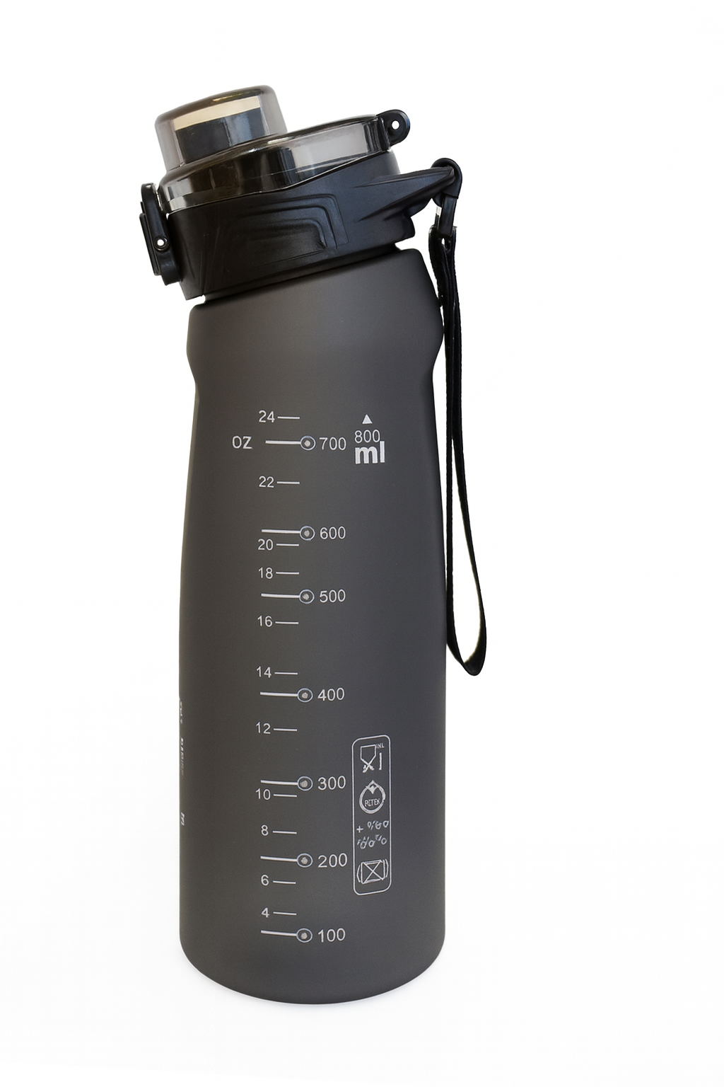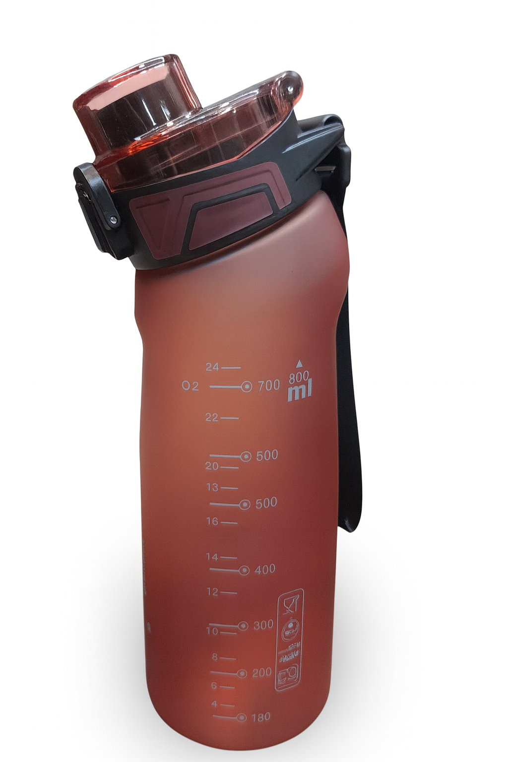 دارای درب قفلدار ضد نشت، بند حمل مقاوم و نشانگر حجم دقیق تا ۸۰۰ میلیلیتر برای کنترل مصرف آب.