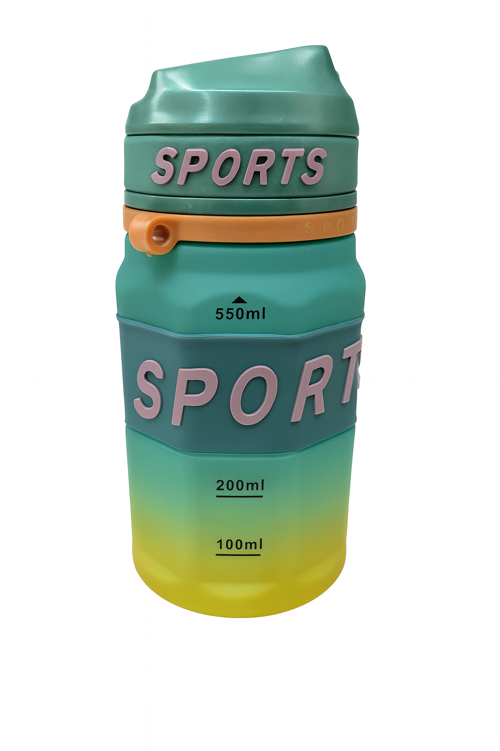 بطری آب اسپرت ۵۵۰ میل با طراحی گرادیانت شیک و جذاب، مناسب استفاده روزانه و ورزش است.