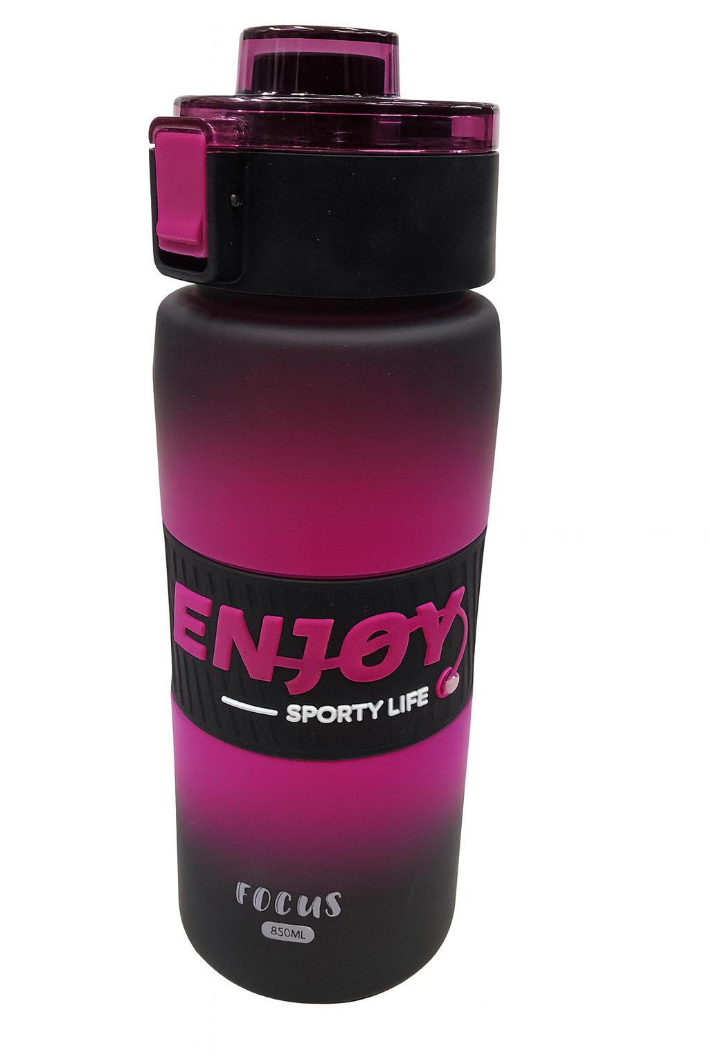 این بطری آب اسپرت مدل ENJOY با طراحی گرادیانت صورتی و مشکی، ظاهر بسیار جذاب و مدرنی دارد. 🥤✨