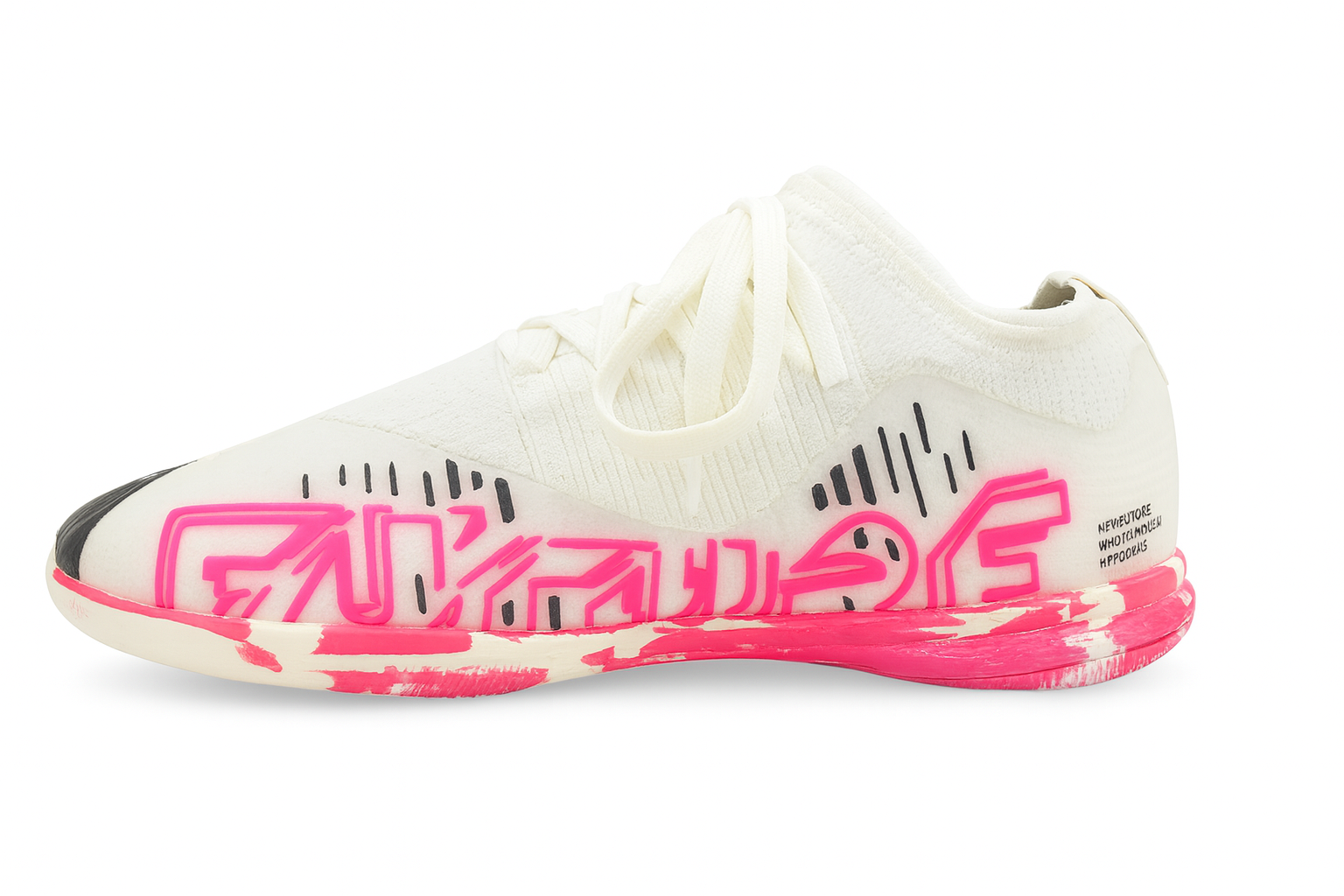 کفش سالنی Puma Future Z سفید با طراحی مدرن و جزئیات صورتی نئونی